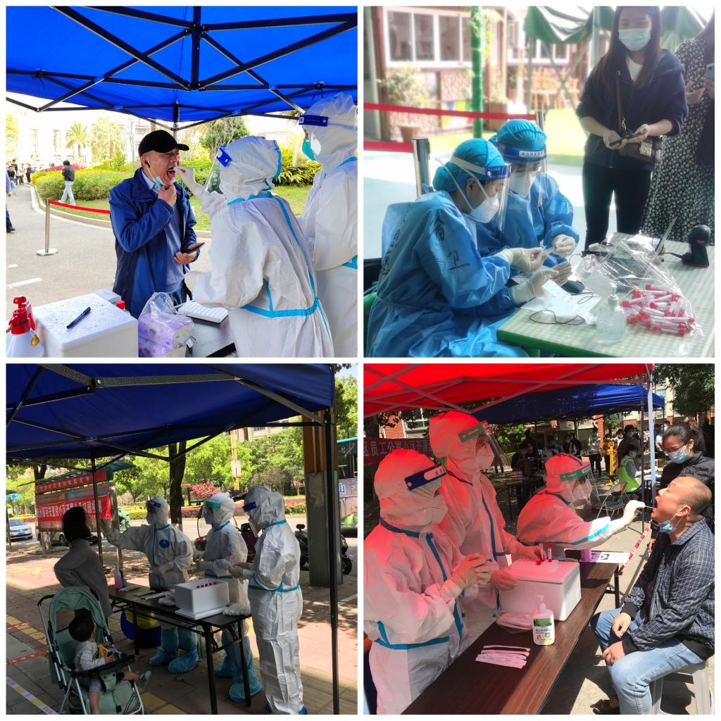 3月19日早上8點(diǎn),龔海蓉帶領(lǐng)124名師生志愿者奔赴閩侯縣甘蔗街道和荊溪鎮(zhèn)八十多個核酸采樣點(diǎn)開啟一整天緊張、忙碌而又充滿挑戰(zhàn)的核酸檢測支援工作。