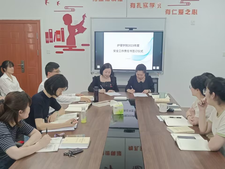 最后,龔海蓉與各教研室主任、林來元與各輔導(dǎo)員分別簽訂《護(hù)理學(xué)院2023年教研室安全工作責(zé)任書》、《護(hù)理學(xué)院2023年學(xué)生安全穩(wěn)定工作責(zé)任書》,做到層層壓實(shí)安全責(zé)任,層層傳導(dǎo)工作要求,推動(dòng)安全責(zé)任落地落實(shí)落細(xì)。