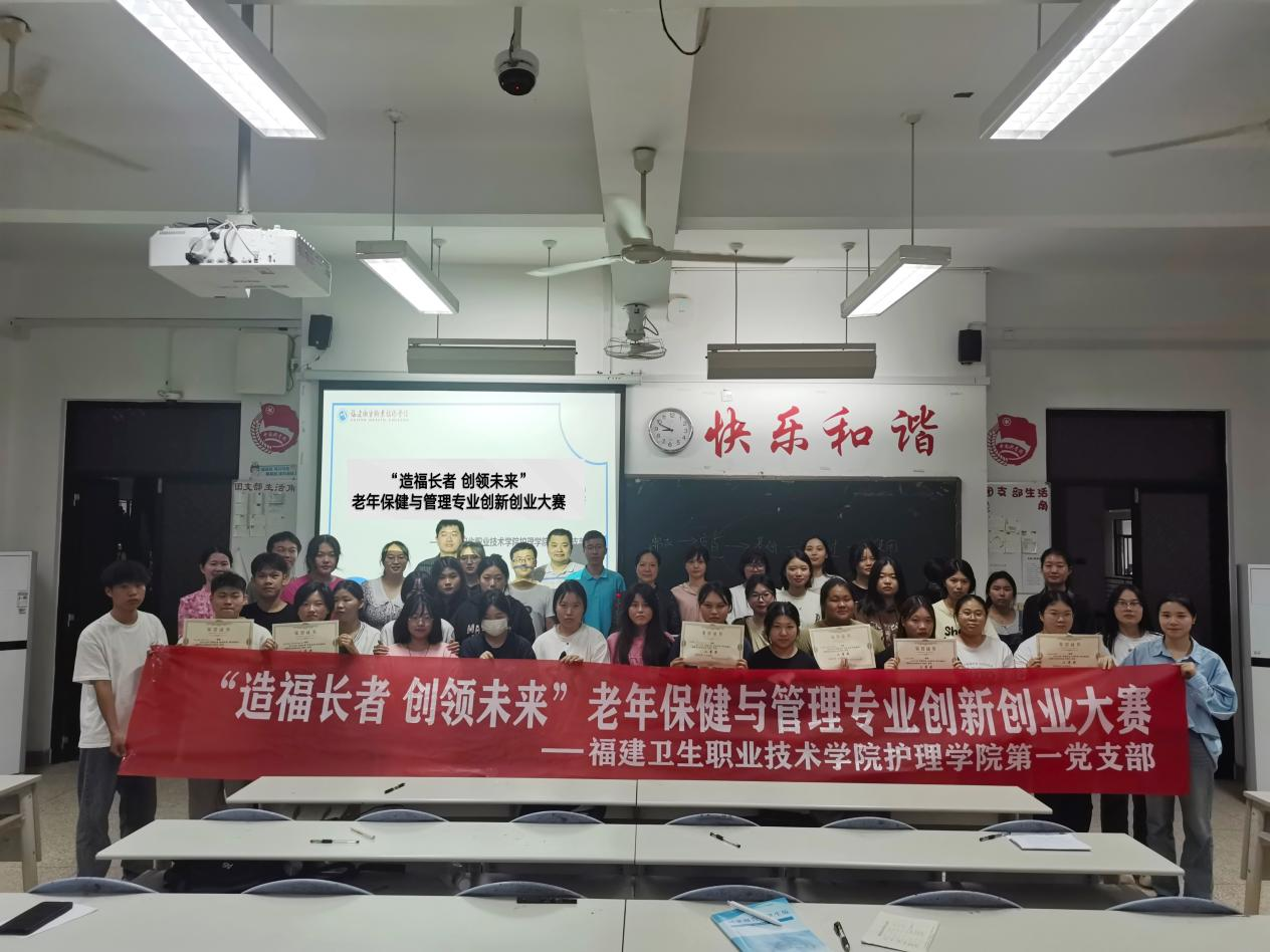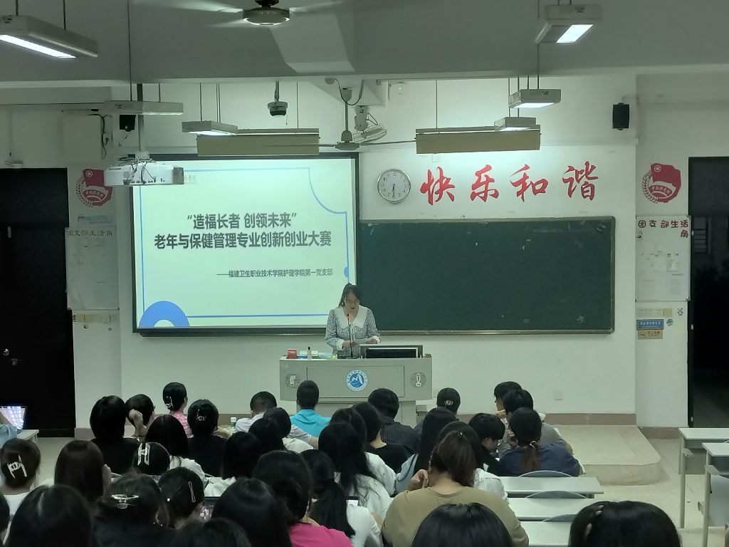 為深入貫徹落實黨的二十大精神,堅持創(chuàng)新是第一動力,激發(fā)大學生創(chuàng)新創(chuàng)業(yè)活力、培養(yǎng)創(chuàng)新能力、鍛煉創(chuàng)業(yè)精神,同時實施積極應對人口老齡化國家戰(zhàn)略,發(fā)展養(yǎng)老事業(yè)和養(yǎng)老產業(yè),護理學院第一黨支部在11月9日晚上,舉辦老年保健與管理專業(yè)首屆創(chuàng)新創(chuàng)業(yè)大賽。望通過以賽促學,學生能將所學知識和社會實踐相結合,增進老年人福祉。蒞臨本次比賽的領導嘉賓有教務處負責人李淼淼、護理學院黨總支副書記林來元、護理學院第一黨支部書記暨老年保健與管理專業(yè)帶頭人吳美丹、護理學院團總支書記林飛準、護理學院學生會負責人張龍老師,以及老年保健與管理專業(yè)教研室全體教師,大賽由2022級老年保健與管理專業(yè)輔導員林佳麗主持。