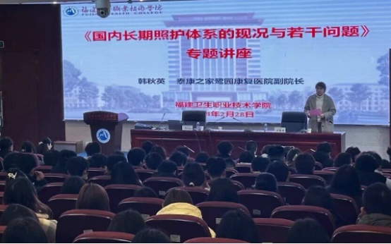 2024年2月28日上午,護理學院邀請?zhí)┛抵寅槇@養(yǎng)老服務&康復醫(yī)院有限公司/主任護師韓秋英教授開展《國內長期照護體系的現(xiàn)況與若干問題》專題講座。本次講座由護理學院院長肖春秀主持,護理學院教師及老年保健與管理專業(yè)學生聆聽了此次講座。