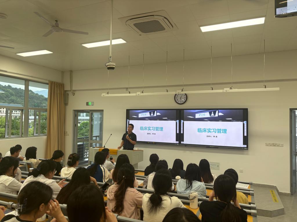 為加強學(xué)生實習(xí)業(yè)務(wù)指導(dǎo)和日常教育管理工作,幫助學(xué)生順利完成實習(xí)任務(wù),5月10日下午,護理學(xué)院在學(xué)院第五階梯教室召開2022級學(xué)生實習(xí)動員部署會。護理學(xué)院黨總支副書記林來元、副院長林浩、2022級輔導(dǎo)員、各實習(xí)單位隊長及副隊長、省外自主實習(xí)學(xué)生共150余人參加了此次會議。