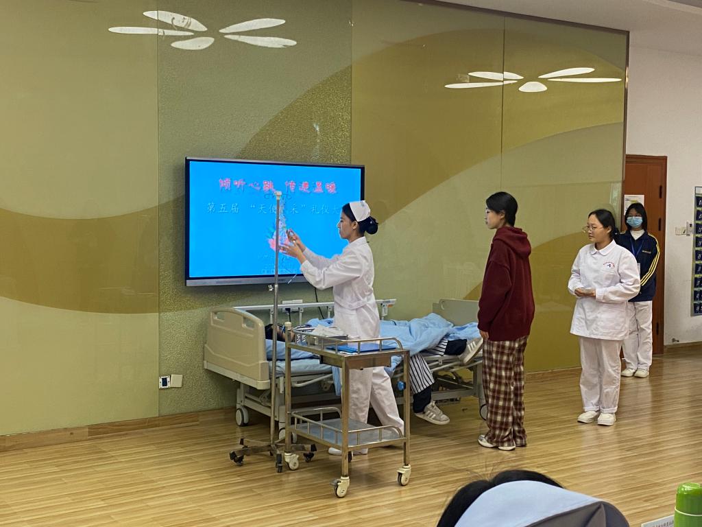 在繁忙的醫(yī)療環(huán)境中,護士與患者之間的溝通往往顯得尤為關(guān)鍵。一句溫暖的話語,一個真誠的眼神,都可能成為患者康復(fù)路上的重要支撐。它讓我們看到,護理溝通不僅僅是傳遞信息,更是傳遞愛與希望的力量。天使學(xué)堂功能型團支部12月12日在護理學(xué)院102教室舉辦第五屆“天使風(fēng)采”禮儀大賽——“傾聽心跳,傳遞溫暖”。本次大賽邀請護理學(xué)院第一支部黨員教師擔(dān)任評委。