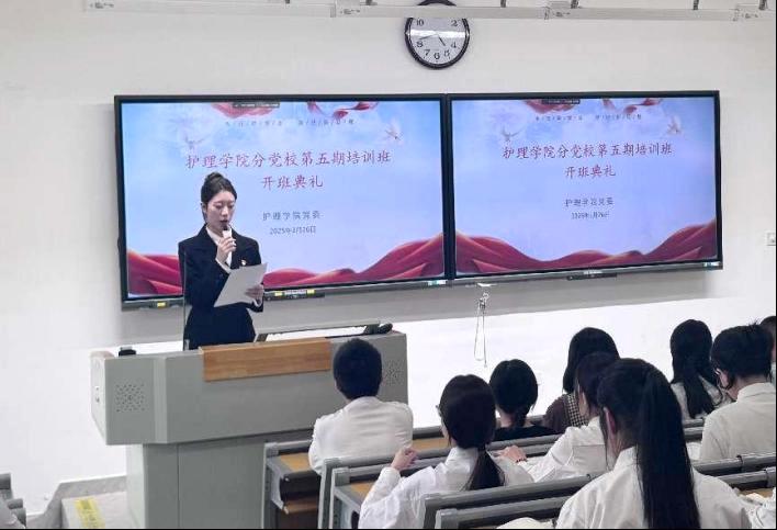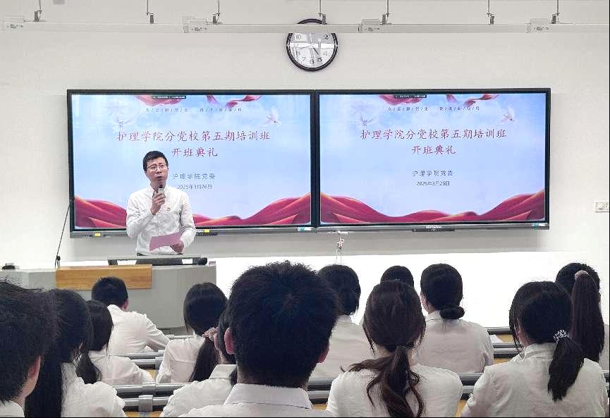 為深入學習貫徹習近平新時代中國特色社會主義思想,切實加強入黨積極分子的教育培養(yǎng)。2025年3月27日,護理學院分黨校第五期入黨積極分子培訓班開班典禮在護理學院第五階梯教室隆重舉行。黨委領(lǐng)導班子、黨支部書記、團總支指導老師與60名入黨積極分子出席開班典禮。