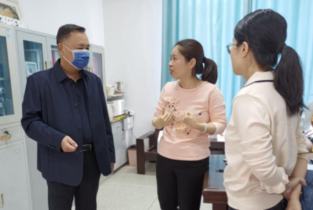 日前,校黨委書記曾武祈來到護理學院,了解疫情期間教職工的工作與生活情況,并與護理學院領導一起參加了教師線上教學的聽課,對改進線上教育教學方式,提高教學效果提出要求。