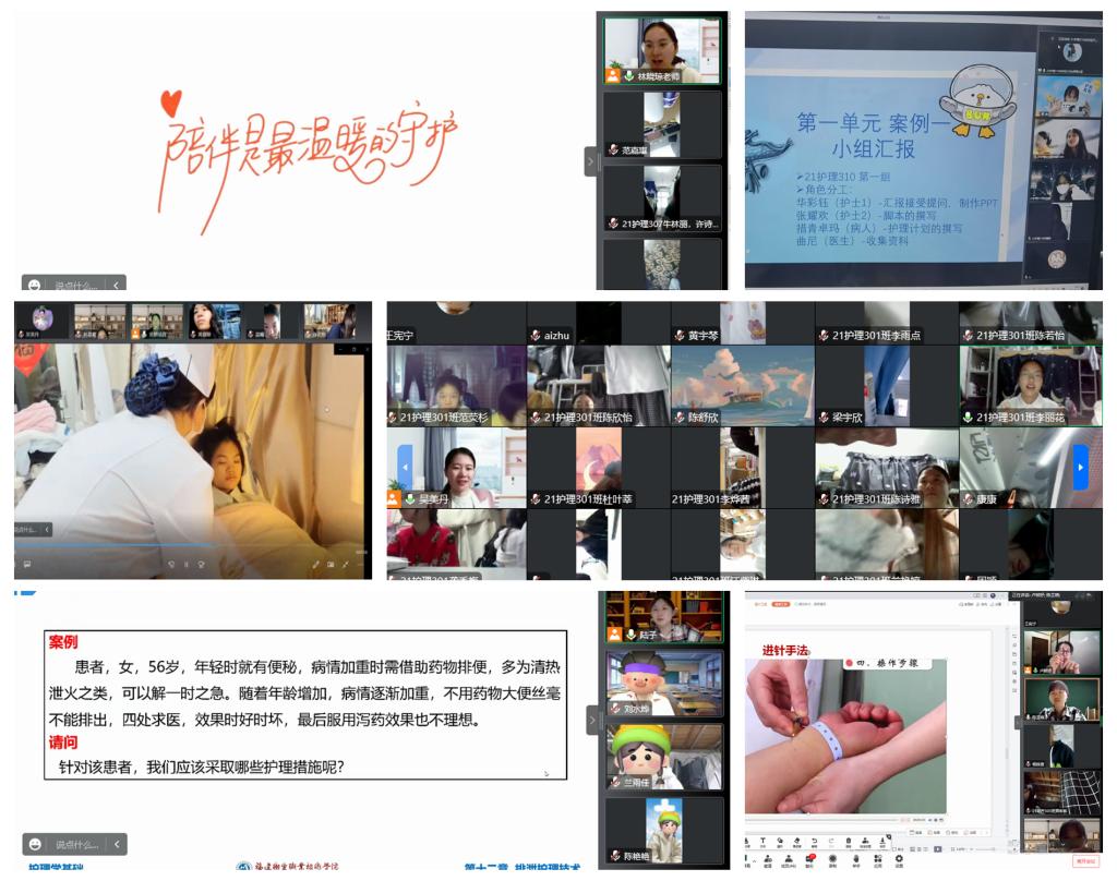 “停課不停教、停課不停學”,自學校啟動線上教學以來,護理學院積極組織教師發(fā)揮線上網(wǎng)絡課程平臺的優(yōu)勢,不斷創(chuàng)新教學的形式和手段,積極探索“有效教學”+“精準指導”線上實訓教學改革,讓同學們在汲取知識的同時,還可以感受到老師們的親切問候和濃濃牽掛。