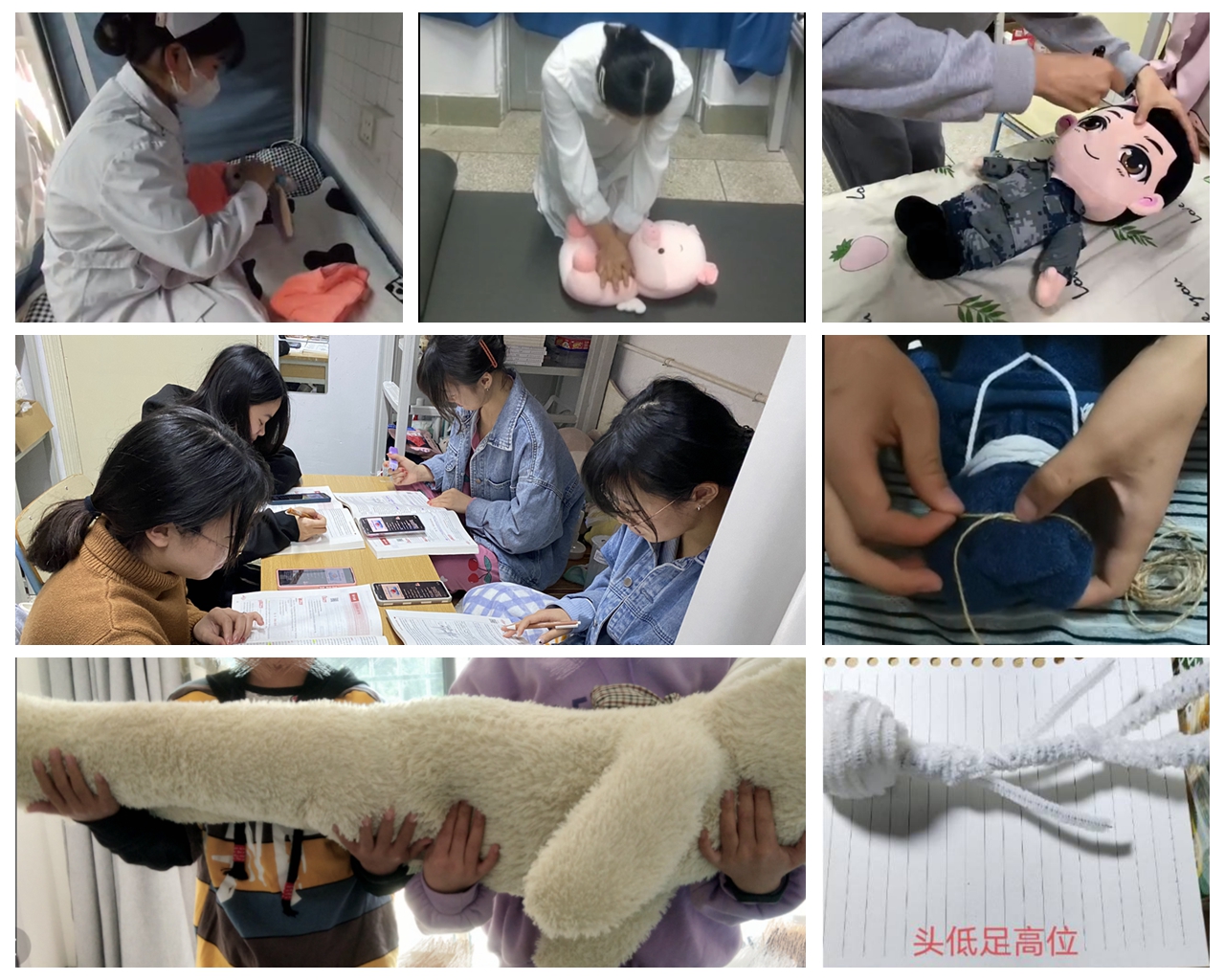 教學(xué)相長(zhǎng),老師們的傾囊相授,換來的是同學(xué)們的積極配合。雖然是在宿舍上課,同學(xué)們依然穿戴整齊,端坐桌前,保持著課堂的儀式感。護(hù)理專業(yè)課技能操作多,宿舍的條件雖然比不上實(shí)訓(xùn)室,但辦法總比困難多,同學(xué)們開動(dòng)腦筋,就地取材,娃娃、枕頭變身模擬人,搬運(yùn)患者、心肺復(fù)蘇、嬰兒撫觸……只要有心,沒有什么能阻擋他們學(xué)習(xí)的熱情。