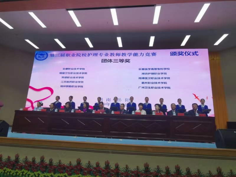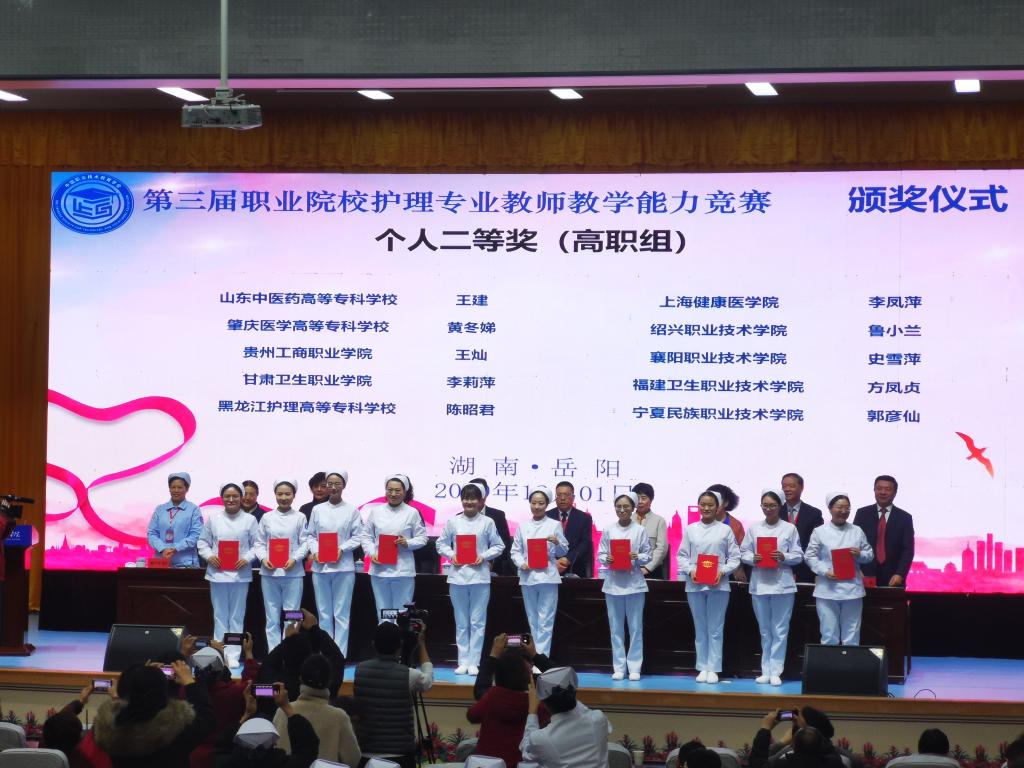2019年11月27日至12月1日,全國職業(yè)院校護理專業(yè)教師教學能力大賽在岳陽職業(yè)技術學院舉行。護理系方鳳貞和楊燕清老師榮獲團體三等獎,方鳳貞老師榮獲個人二等獎。