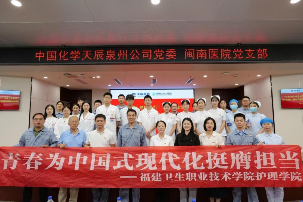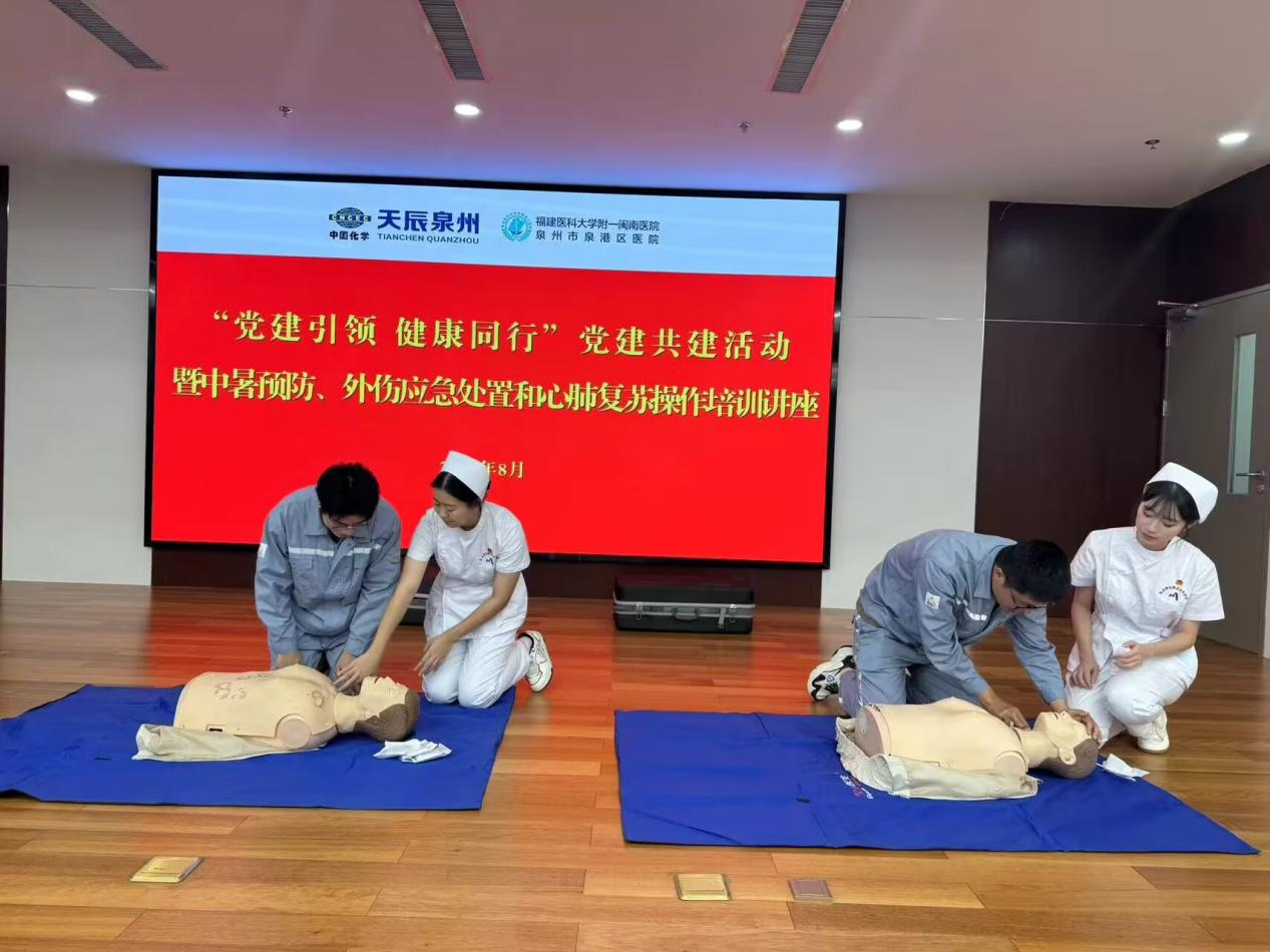 2024年8月9日下午,福建衛(wèi)生職業(yè)技術(shù)學(xué)院護(hù)理學(xué)院第二黨支部副書記林婕老師帶領(lǐng)護(hù)理學(xué)院夢(mèng)飛天使”志愿服務(wù)隊(duì)的隊(duì)員們攜手福建醫(yī)科大學(xué)附一閩南醫(yī)院泉州市泉港區(qū)醫(yī)院一同前往中化學(xué)天辰泉州新材料有限公司為職工開展醫(yī)學(xué)知識(shí)宣教與CPR的演示與教學(xué)活動(dòng)。