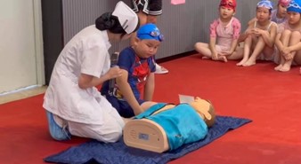 泳池邊,孩子們圍聚成圈,目光緊緊跟隨元欣怡的雙手,生怕錯過任何關(guān)鍵動作。隨后進(jìn)入實(shí)操練習(xí),大家躍躍欲試,在元欣怡的悉心指導(dǎo)下,輪流上陣模擬急救場景。有的同學(xué)起初略顯緊張,按壓節(jié)奏不穩(wěn),但在反復(fù)練習(xí)與耐心糾正下,逐漸掌握了技巧,雙手沉穩(wěn)有力地按壓著模擬人胸膛,吹氣時神情專注。現(xiàn)場氣氛熱烈而有序,問題與解答聲此起彼伏,學(xué)習(xí)的熱情如同泳池里的水花不斷翻涌。