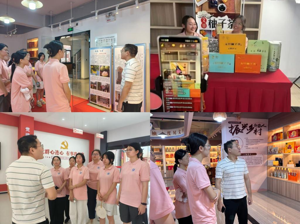 在柚相鄰二樓產(chǎn)業(yè)能級提升中心,同時也是文旦柚助農(nóng)直播基地,隊員們積極參與助農(nóng)直播,詳細(xì)介紹文旦柚的營養(yǎng)價值、特色口感以及柚子茶、柚子醬、柚子果脯等衍生產(chǎn)品的制作工藝和風(fēng)味。依托合作基地,他們積極建言獻(xiàn)策,推動加強(qiáng)品牌建設(shè),打造具有地域特色和市場競爭力的文旦柚品牌,促進(jìn)產(chǎn)業(yè)向標(biāo)準(zhǔn)化、規(guī)?;?、品牌化發(fā)展,讓小小文旦柚真正“聯(lián)”通千家萬戶,成為撬動鄉(xiāng)村振興、凝聚最美鄉(xiāng)韻的“黃金果”。