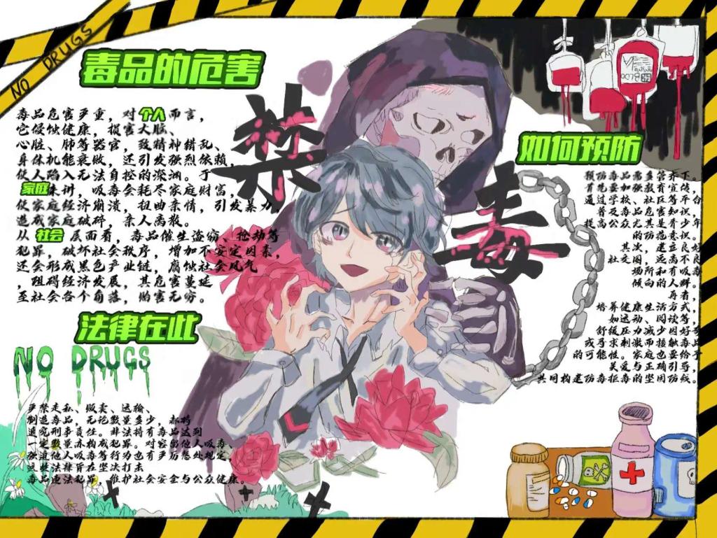 校園無毒,青春有我。同學(xué)們通過藝術(shù)的筆觸,傳遞“健康人生,綠色無毒”的良好生活理念,將禁毒理念內(nèi)化于心、追逐無毒夢想。我院將以此次活動(dòng)為契機(jī),繼續(xù)加強(qiáng)禁毒宣傳教育,讓禁毒之花開遍校園的每一個(gè)角落。