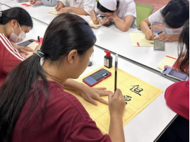 筆墨濃淡,字如其人。比賽中,同學們坐姿端正,運筆沉穩(wěn),屏息凝神。下筆,起筆,頓筆,提筆揮灑自如,盡顯筆鋒。一張一弛,一抑一揚之間彰顯著學生們深厚的書法功底。
