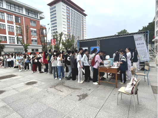 在本次活動中,同學(xué)們仿佛進(jìn)入了五彩斑斕的創(chuàng)意世界。挑選自己喜歡的三種顏色并將其滴入水中,隨后把扇子輕浸入水,手持畫筆,在扇面上舞動,這是一場色彩的舞蹈。緊接著靈巧地運(yùn)用“點、甩、彈、劃”等獨特手法,繪出一個個鮮明的、別具一格的圖案。在此環(huán)節(jié)中,我們將收獲自己繪出的唯一之扇,收獲“10.10”最獨特的紀(jì)念品。
