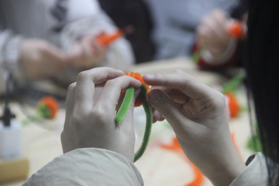 同學(xué)們運(yùn)用扭扭棒、熱熔膠、剪刀等工具,看似簡(jiǎn)單的一顆顆小柿子,大家都做的都萬(wàn)分認(rèn)真。同學(xué)們輕輕地把扭扭棒卷上,再各種的穿插,過(guò)程中大家都小心翼翼,只為把手中的作品做的最美、最好!