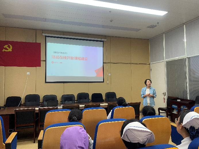 活動伊始,金爽主任老師們的到訪表示熱烈歡迎,對院校協(xié)同課程建設(shè)總體思路進行了簡要闡述,并鼓勵大家共同優(yōu)化教學(xué)改革的策略,為培養(yǎng)實用型護理人才探索新的路徑。洪霞教授代表學(xué)院對各單位長期以來對內(nèi)科護理教研室教學(xué)工作的支持表示衷心的感謝,并介紹了教研室課程建設(shè)方面的探索、實踐、經(jīng)驗和成果,強調(diào)在線精品開放課程建設(shè)的重要性,指出了課程建設(shè)的重點和難點,希望各位領(lǐng)導(dǎo)和專家們能夠圍繞校級建設(shè)方案,以臨床教學(xué)案例化、情境化教育改革為基礎(chǔ),共同梳理課程模塊,進一步將護理職業(yè)精神融入教育教學(xué)工作,促進院校協(xié)同課程建設(shè)。