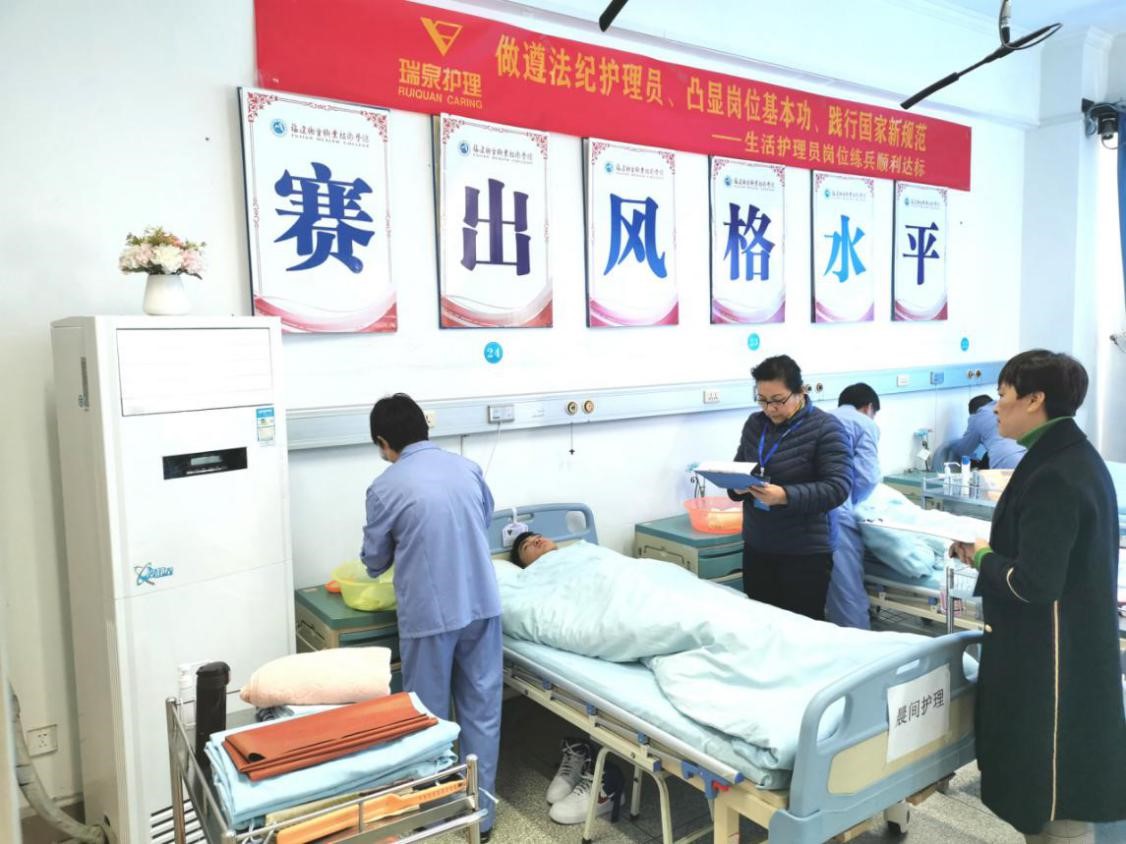 2019128日,第五屆“瑞泉杯”生活護理崗位擂臺賽全省總決賽在我校成功舉辦。參加總決賽的23名選手是由全省各參賽醫(yī)院推薦,經過層層選拔出來的優(yōu)秀護理員。比賽分組長組和普通護理員組,比賽內容分為理論和技能兩大部分,組長組比賽增加一項現(xiàn)場應答環(huán)節(jié),理論部分采取筆試考核方式,技能部分包括了輪椅運送技術、床上擦浴、晨間護理等5項生活護理技術。