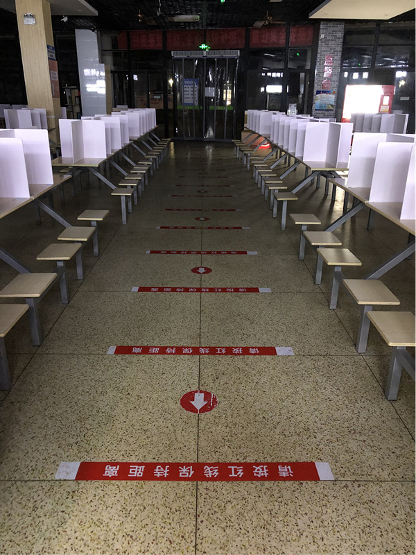 面對當(dāng)前疫情多點散發(fā)的嚴(yán)峻態(tài)勢,為進一步強化校園疫情防控,后勤管理處將食堂防疫舉措做實、做深、做細(xì)。除了要求所有進入食堂的人員佩戴口罩、保持安全距離,對食堂進行定期消殺外,3月12日,后勤管理處升級防控舉措,安排人員利用周末時間加急為三個食堂350多張餐桌安裝了PVC隔板,將每張餐桌分割成四個獨立“小包間”,阻斷堂食期間飛沫傳播,為師生安全衛(wèi)生用餐增添一道安全屏障。