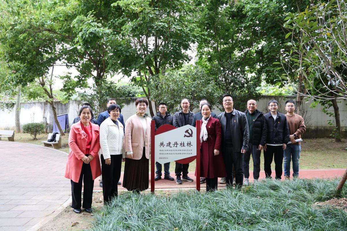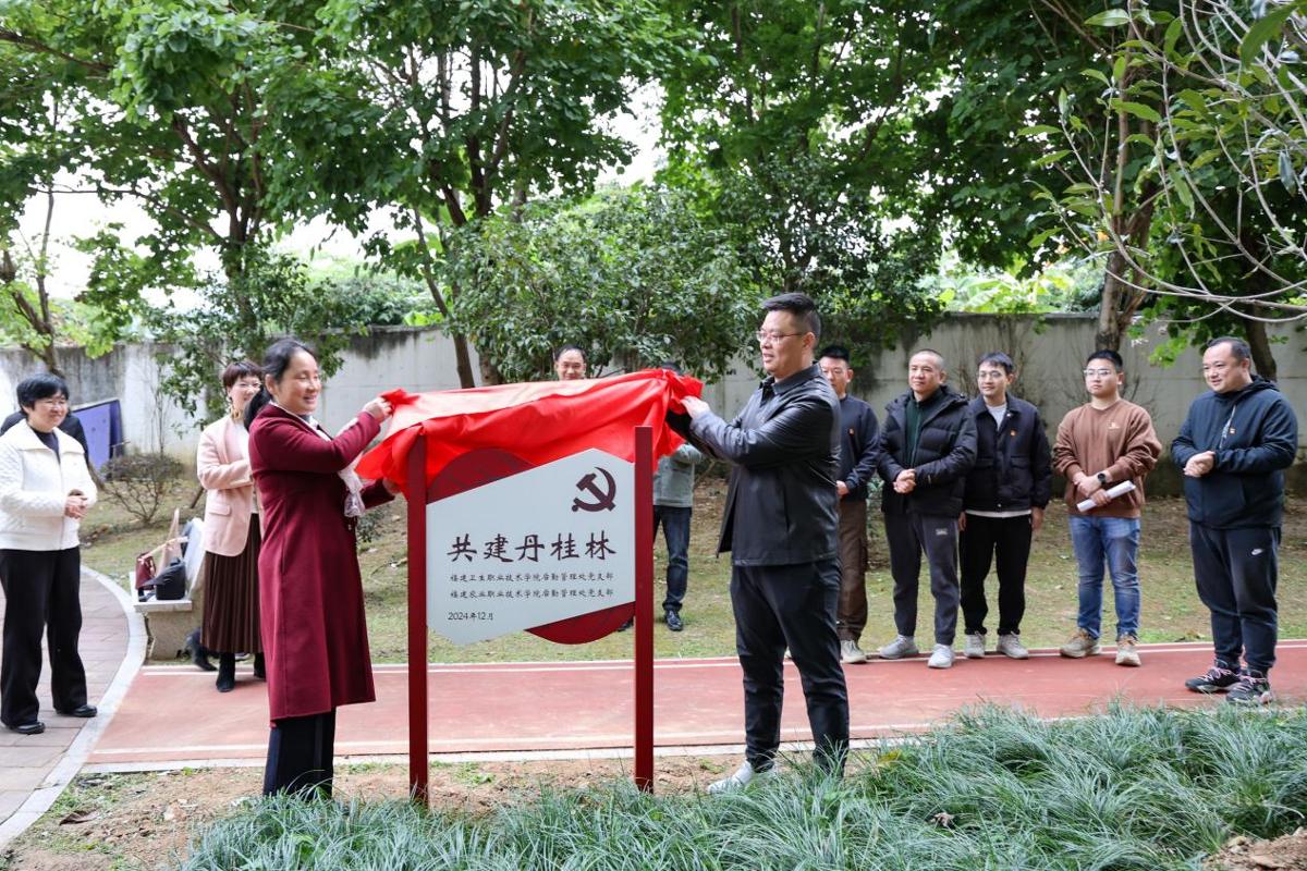 為加強高校基層黨支部建設,發(fā)揮黨支部黨建聯(lián)建的優(yōu)勢互補作用,1225日下午,我校后勤管理處黨支部與福建農(nóng)業(yè)職業(yè)技術學院后勤管理黨支部在環(huán)校步道舉行支部共建“丹桂林”揭牌儀式,我校組織部部長謝濤、院直機關黨總支書記艾松軍、福建農(nóng)業(yè)職業(yè)技術學院后勤管理處黨支部書記黃曉梅以及兩校后勤管理處黨支部黨員同志參加揭牌儀式。