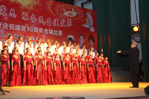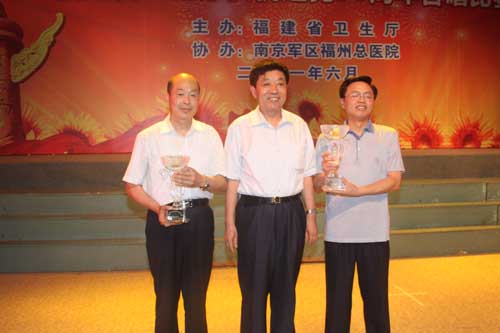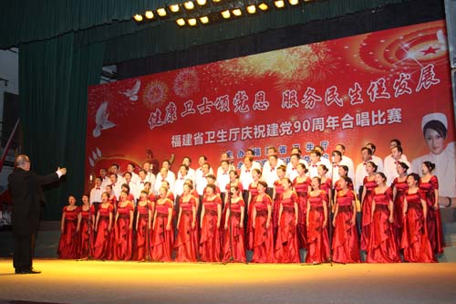 由省衛(wèi)生廳主辦的慶祝中國共產(chǎn)黨成立90周年“健康衛(wèi)士頌黨恩 服務(wù)民生促發(fā)展”合唱比賽,6月14日下午在福州總院禮堂隆重舉行,共有省屬醫(yī)療衛(wèi)生單位13個(gè)團(tuán)隊(duì)參加了比賽,我院領(lǐng)導(dǎo)和教職工60人組成的合唱團(tuán),帶著《在燦爛陽光下》、《七律·人民解放軍占領(lǐng)南京》兩首曲目、帶著飽滿的熱情和良好的精神風(fēng)貌參加了比賽,榮獲二等獎。