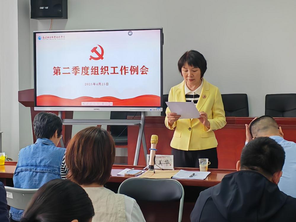 為聚焦黨支部建設(shè)重點(diǎn)任務(wù),4月25日,學(xué)校召開(kāi)第二季度組織工作例會(huì),黨委副書(shū)記李美華,各二級(jí)黨組織書(shū)記、副書(shū)記,專(zhuān)職組織員,學(xué)生黨支部書(shū)記,組織統(tǒng)戰(zhàn)部工作人員等三十余人參加會(huì)議。會(huì)議由組織統(tǒng)戰(zhàn)部副部長(zhǎng)黃小芳主持。