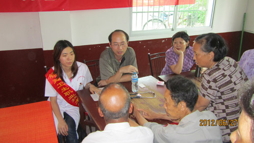 6月27日,實踐團隊一行14人(其中學院老師6人,附屬醫(yī)院醫(yī)生1人,學生7人)在魏立娜副院長的帶領下,經過5個小時的行程,順利到達川石鄉(xiāng)后,即在川石鄉(xiāng)川石村村部設置義診點,開始了本次的社會實踐。來自我院附屬省級機關醫(yī)院的專家首先為當地的老百姓做了一堂深入淺出的健康教育講座,而后又開展了體檢義診贈藥和醫(yī)保宣傳、獻血控煙宣傳等活動,前來咨詢的群眾絡繹不絕,現場氣氛熱烈。次日早晨,實踐團隊在川石鄉(xiāng)相關領導的陪同下,深入川石鄉(xiāng)更加偏僻的邊溪村,考察基層的衛(wèi)生資源狀況并進行義診體檢贈送藥品活動。