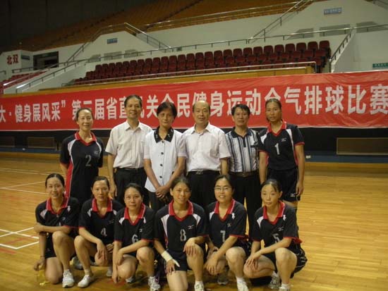 由我院胡麗芳、 阮秋容、倪捷、黃躍、劉麗萍、陳筱瑜、鄧素華、林燕8位組成的女子氣排球隊代表省衛(wèi)生廳參加2012年省直機關(guān)全民健身運動會女子氣排球比賽,她們齊心協(xié)力、頑強拼搏、連克強隊,打出了高水平,取得了七戰(zhàn)六勝的好成績,榮獲一等獎。