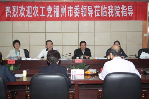 11月11日下午,福建省人大常委會(huì)委員,原福州市政協(xié)副主席、農(nóng)工黨福州市原主委陳震宙、副主委林澄、丁毅黎,組織處長鄭華一行四人到我院調(diào)研。院黨委書記嚴(yán)肅、院長林春明、副書記陳雄、副院長黃開良等領(lǐng)導(dǎo)熱情接待了來訪客人。倉山區(qū)農(nóng)工黨教育二支部全體成員參加了會(huì)議。