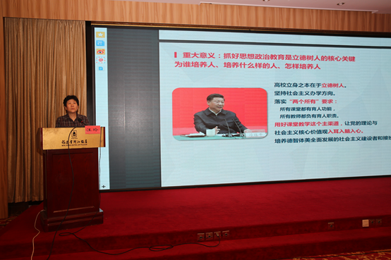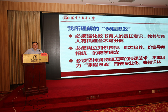 會(huì)上,多位專家圍繞“課程思政”教學(xué)改革進(jìn)行了交流。福建中醫(yī)藥大學(xué)黨委副書記黃子杰教授作了題為《管理育人》的專題講座,提出思政教育應(yīng)是注重管理者自身素質(zhì)提升,通過(guò)以身作則、言傳身教達(dá)到育人成效。省衛(wèi)職院副院長(zhǎng)鄭翠紅以《推進(jìn)“課程思政”改革,構(gòu)筑“三全育人”格局》為題,介紹了該校推動(dòng)“思政課程”向“課程思政”立體化育人模式轉(zhuǎn)型的一系列舉措。復(fù)旦大學(xué)醫(yī)學(xué)教育研究所所長(zhǎng)汪玲教授向大家介紹了上海市高校課程思政教育教學(xué)改革的先進(jìn)經(jīng)驗(yàn)和教學(xué)成果;復(fù)旦大學(xué)護(hù)理學(xué)院黨總支書記包江波教授針對(duì)醫(yī)學(xué)人文教育做了專題講座,提出將思政與人文內(nèi)化于醫(yī)學(xué)教育的主體之中,以思政為根,以人文為道,提升民族自信與文化自信。