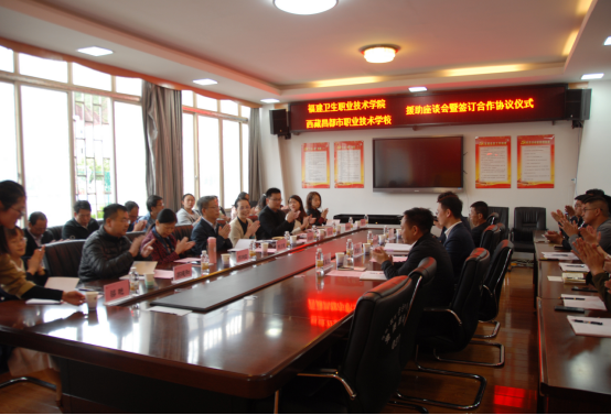 昌都市職業(yè)技術學校黨委書記余向輝主持儀式,代表學校向我院一行到來表示熱烈歡迎,并對此次成功簽約表達美好祝愿。昌都職校副校長王磊在致辭中介紹學校近年在諸多方面取得的長足發(fā)展,作為昌都市唯一的職業(yè)技術學校,肩負著為昌都市培養(yǎng)合格、優(yōu)秀醫(yī)護人才的重任,希望以此次座談會暨簽訂合作協(xié)議為契機,搶抓機遇,通過多種形式加強交流合作,學習福建衛(wèi)生職業(yè)技術學院先進的教育教學、管理理念,進一步加強隊伍建設、專業(yè)建設,擴大辦學規(guī)模、提升辦學效益,再上新臺階。