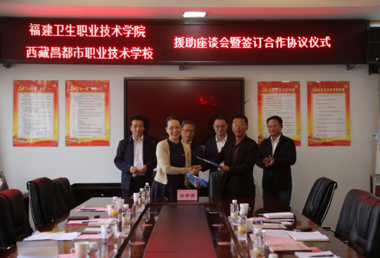 福建衛(wèi)生職業(yè)技術學院副院長鄭翠紅介紹了學院的百年歷程。近年來,學院搶抓歷史機遇,堅持立德樹人,深化教育改革,改善辦學條件,提高辦學水平,近年來被省教育廳、省發(fā)改委、省財政廳正式確定為“福建省示范性高等職業(yè)院校”和“福建省示范性現(xiàn)代職業(yè)院校建設工程A類培育院?!薄K硎?,兩校要具體落實此次座談會暨合作協(xié)議精神,強化交流、加強互動、攜手并行、共謀發(fā)展,為昌都市職業(yè)技術學校提高臨床護理教學水平,開擴學生視野,增長學生知識,培養(yǎng)更多優(yōu)秀護理人才。