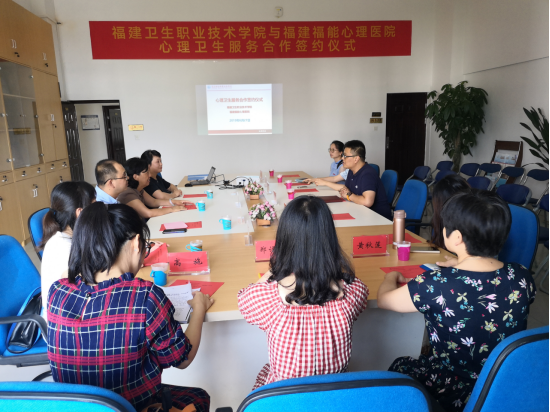 為進(jìn)一步加強(qiáng)學(xué)院心理健康教育的育人功能,強(qiáng)化精神衛(wèi)生專(zhuān)業(yè)服務(wù)資源的引進(jìn),共同促進(jìn)學(xué)生精神衛(wèi)生與心理健康,6月27日下午,我院心理健康教育中心與福能心理醫(yī)院在管理系會(huì)議室舉行心理衛(wèi)生服務(wù)合作簽約儀式。學(xué)院黨委副書(shū)記李美華、福能集團(tuán)總醫(yī)院副院長(zhǎng)李斌、福能心理醫(yī)院副總經(jīng)理王慶華、大客戶(hù)部經(jīng)理江秋玲、運(yùn)營(yíng)部專(zhuān)員張敏捷、學(xué)院管理系黨總支書(shū)記兼心理健康教育中心主任艾松軍、管理系主任兼心理健康教育中心副主任莊海林、心理健康教育中心副主任田偉翠、心理健康教育中心成員及各系心理輔導(dǎo)員參加會(huì)議。