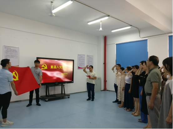 活動(dòng)由黨總支負(fù)責(zé)人陳俊穎副書(shū)記主持,在莊嚴(yán)的國(guó)歌聲后,全體黨員一起觀看了為慶祝黨的98歲生日而傾情創(chuàng)作的獻(xiàn)禮短片《我宣誓——》,視頻展現(xiàn)一代又一代優(yōu)秀中國(guó)共產(chǎn)黨人不忘初心、牢記使命的政治本色和為人民為國(guó)家為民族赴湯蹈火、無(wú)私奉獻(xiàn)的高尚情操。