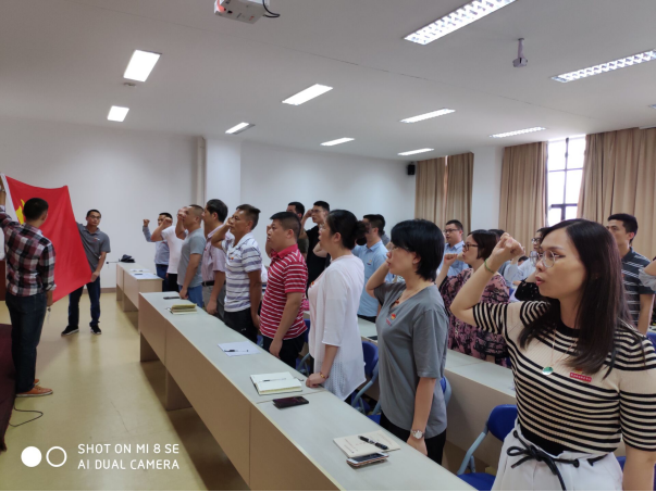 大會開始,全體黨員起立奏唱國際歌。隨后,洪常青等27位第二季度入黨的同志重溫了入黨誓詞。
