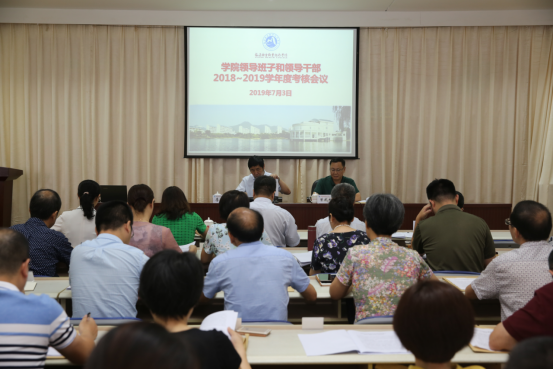 根據(jù)省教育廳黨組的統(tǒng)一部署和要求,7月3日上午,我院在行政樓六樓第三會(huì)議室召開院領(lǐng)導(dǎo)班子和領(lǐng)導(dǎo)干部2018-2019學(xué)年度考核會(huì)議。省教育廳黨組成員、副廳長(zhǎng)、省委教育工委委員李迅,省教育廳學(xué)校安全工作處處長(zhǎng)李建華,省教育廳人事處副調(diào)研員蘇震英,省教育科學(xué)研究所辦公室副主任陳建超對(duì)我院領(lǐng)導(dǎo)班子和領(lǐng)導(dǎo)干部進(jìn)行考核。學(xué)院領(lǐng)導(dǎo)班子成員、中層干部、具有一定管理經(jīng)驗(yàn)的高級(jí)職稱專技人員等共67位同志參加會(huì)議,會(huì)議由學(xué)院黨委書記曾武祈主持。