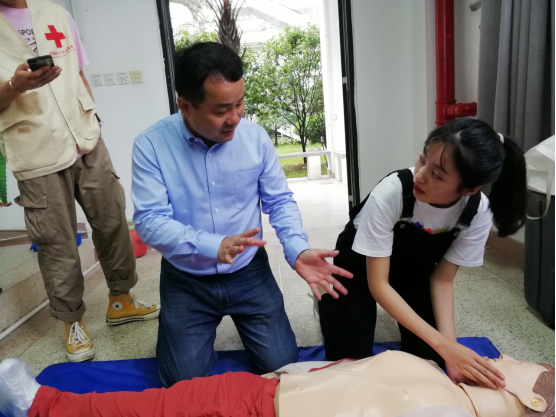 講座結(jié)束后,鄭明華老師專門為我院紅十字學(xué)生分會(huì)的志愿者手把手指導(dǎo)了心肺復(fù)蘇技能的講解技巧和推廣方法,規(guī)范志愿者們的每一步操作,為急救培訓(xùn)部的志愿者準(zhǔn)確有效地推廣心肺復(fù)蘇術(shù)打下堅(jiān)實(shí)的基礎(chǔ)。