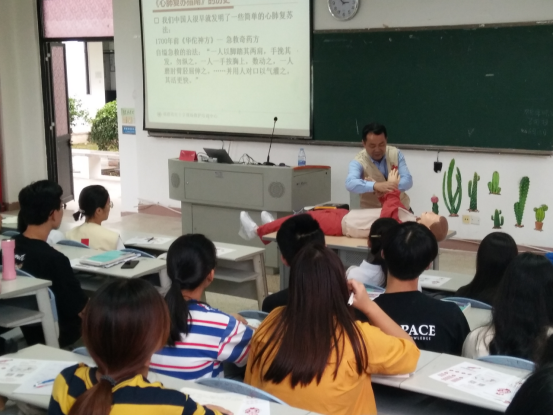 講座中,鄭明華老師與現(xiàn)場(chǎng)學(xué)生積極互動(dòng)對(duì)答,精彩的演講與親身示范把急救知識(shí)與技能有效的傳遞給在場(chǎng)聆聽的每個(gè)同學(xué),同學(xué)們受益匪淺,不時(shí)就送上陣陣熱烈的掌聲,現(xiàn)場(chǎng)氣氛十分濃烈。