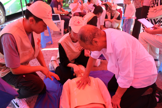 學(xué)院紅十字志愿者耐心細(xì)致地向大家介紹急救包扎方法,運(yùn)用安妮假人現(xiàn)場(chǎng)展示心肺復(fù)蘇術(shù)操作,講解實(shí)施心肺復(fù)蘇術(shù)的操作要點(diǎn),活動(dòng)現(xiàn)場(chǎng),從小學(xué)生到七旬老者都認(rèn)真學(xué)習(xí),并紛紛嘗試操作,大家充分認(rèn)識(shí)了掌握急救知識(shí)和技能在日常生活中的必要性,全社會(huì)參與關(guān)愛(ài)生命,守護(hù)健康的理念深入人心。