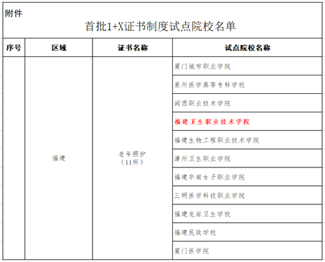 日前,教育部職業(yè)技術(shù)教育中心研究所正式公布《首批1+X證書制度試點(diǎn)院校名單》,我院護(hù)理系申請(qǐng)的老年照護(hù)證書名列其中。
