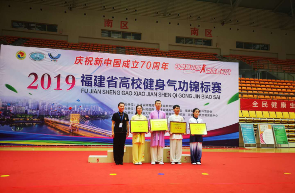 5月24日至27日,由福建省教育廳、福建省體育局主辦的2019福建省高校健身氣功錦標賽在三明沙縣人民體育館舉行,在兩天六場的比賽中,來自32所高校的34支代表隊、204名運動員參加了集體及個人項目的角逐。 我院健身氣功隊的6名隊員在領隊阮秋容老師、教練黃躍、王鈍銳、李通老師的帶領下,以飽滿的熱情和自信在比賽場上毫無保留地展現(xiàn)了自己的實力和風采。最終,我院代表隊在個人項目中獲得2金、2銀、1銅,以及第六名1項,集體項目獲得一等獎1項,二等獎1項,丙組團體總分位列第四名。