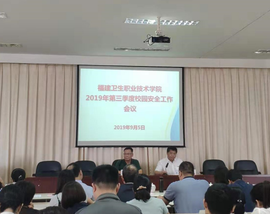 為扎實(shí)推進(jìn)開學(xué)初學(xué)院各項(xiàng)安全工作,積極有效地做好新一輪“平安校園”迎評(píng)創(chuàng)建工作。2019年9月5日上午10時(shí),學(xué)院在行政樓六樓會(huì)議室召開了2019年第三季度校園安全工作會(huì)議。會(huì)議由學(xué)院院長(zhǎng)蘇友新主持,學(xué)院黨委委員、全體中層干部、各系部實(shí)訓(xùn)中心主任、全體輔導(dǎo)員(專職)等參加了此次會(huì)議。