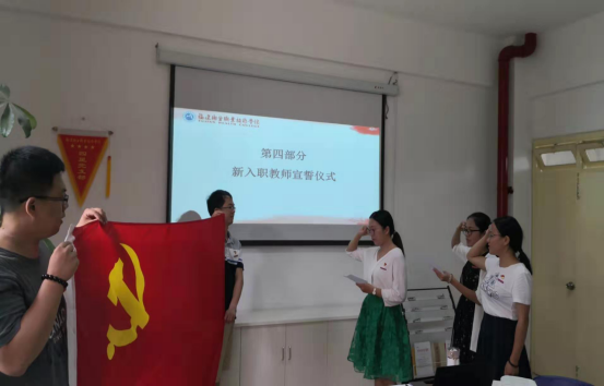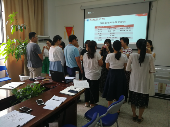 隨后,馬院全體教師在師德承諾書做出了鄭重的許諾,新入職教師面對黨旗進(jìn)行了莊嚴(yán)的宣誓。為促進(jìn)新教師更好成長,馬院精心遴選了教學(xué)和科研工作經(jīng)驗(yàn)豐富的教師作為導(dǎo)師幫扶指導(dǎo)新教師,現(xiàn)場舉行了簡單而隆重的拜師儀式,致力完成1年內(nèi)的“5個(gè)一”成長計(jì)劃,即至少精上一門主干課、聽一門課、開一次馬院公開課、參與一項(xiàng)課題、撰寫一篇工作心得;3年內(nèi)至少完成“5個(gè)一”成長計(jì)劃,即講好一門主干課、發(fā)表一篇C刊論文、作為主要完成人完成一項(xiàng)課題、參加一次校級及以上教學(xué)比賽、進(jìn)行一次學(xué)術(shù)交流,充分發(fā)揮成長導(dǎo)師的傳幫帶作用,全方位引領(lǐng)和幫助新上崗教師成長。隨后,根據(jù)黨和國家對思想政治理論課教師的要求,與會人員對我院思政課教師宣誓詞(征求意見稿)進(jìn)行熱烈探討。
