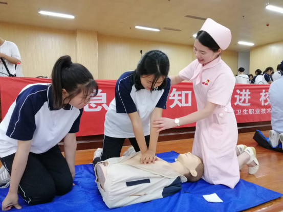 為深入學習貫徹習近平總書記關于“不忘初心、牢記使命”主題教育的重要講話和重要指示批示精神,迎接中華人民共和國成立70周年,充分發(fā)揮黨組織的戰(zhàn)斗堡壘作用和黨員的先鋒模范作用。9月19日,我院護理系黨總支于閩侯職業(yè)中專學校開展“急救知識進校園”主題黨日活動,提高青少年溺水防范意識和自救、互救意識及技能。院黨委曾武祈書記、李美華副書記、護理系黨總支謝濤書記、護理系龔海蓉副主任、林桂松副書記、閩侯職專師生、護理系2019級部分學生、護理系全體黨員教師及入黨積極分子參加此次志愿者活動。