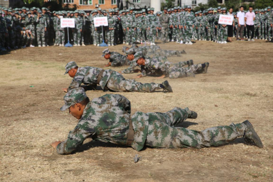 經(jīng)過刻苦排練,由64位同學(xué)組成的軍體拳方陣和教官戰(zhàn)術(shù)動作表演,精彩紛呈,令人目不暇接,驚嘆連連。