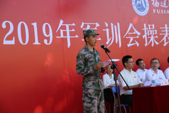 陳貞健副院長代表學(xué)院講話,他表示軍訓(xùn)鍛煉的是身體,磨煉的是意志,訓(xùn)練的是作風(fēng),熔鑄的是理想,高揚的是精神。他對新同學(xué)們提出了三點希望,希望同學(xué)們增強國防觀念,牢固樹立國家安全意識,自覺關(guān)注世界局勢,學(xué)習(xí)軍事知識,主動了解國防、關(guān)心國防;加強體育鍛煉,保持身心健康,不斷提升自身身體素質(zhì);鞏固軍訓(xùn)成果,把軍訓(xùn)中形成的好思想、好作風(fēng)要融入到學(xué)習(xí)、生活和實踐中,刻苦鉆研、奮發(fā)有為,努力成為一名優(yōu)秀的醫(yī)藥衛(wèi)生人才。