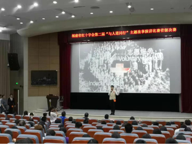 本屆大賽由福建省紅十字會主辦,福建中醫(yī)藥大學(xué)紅十字分會協(xié)辦。大賽以“與人道同行”為演講主題,經(jīng)過一個下午的激烈角逐,最終確定一等獎1名,二等獎2名,三等獎3名。我院17級護理317班陳俊興同學(xué)的“傳遞紅色愛心 播撒人道光輝”主題演講獲得決賽二等獎。