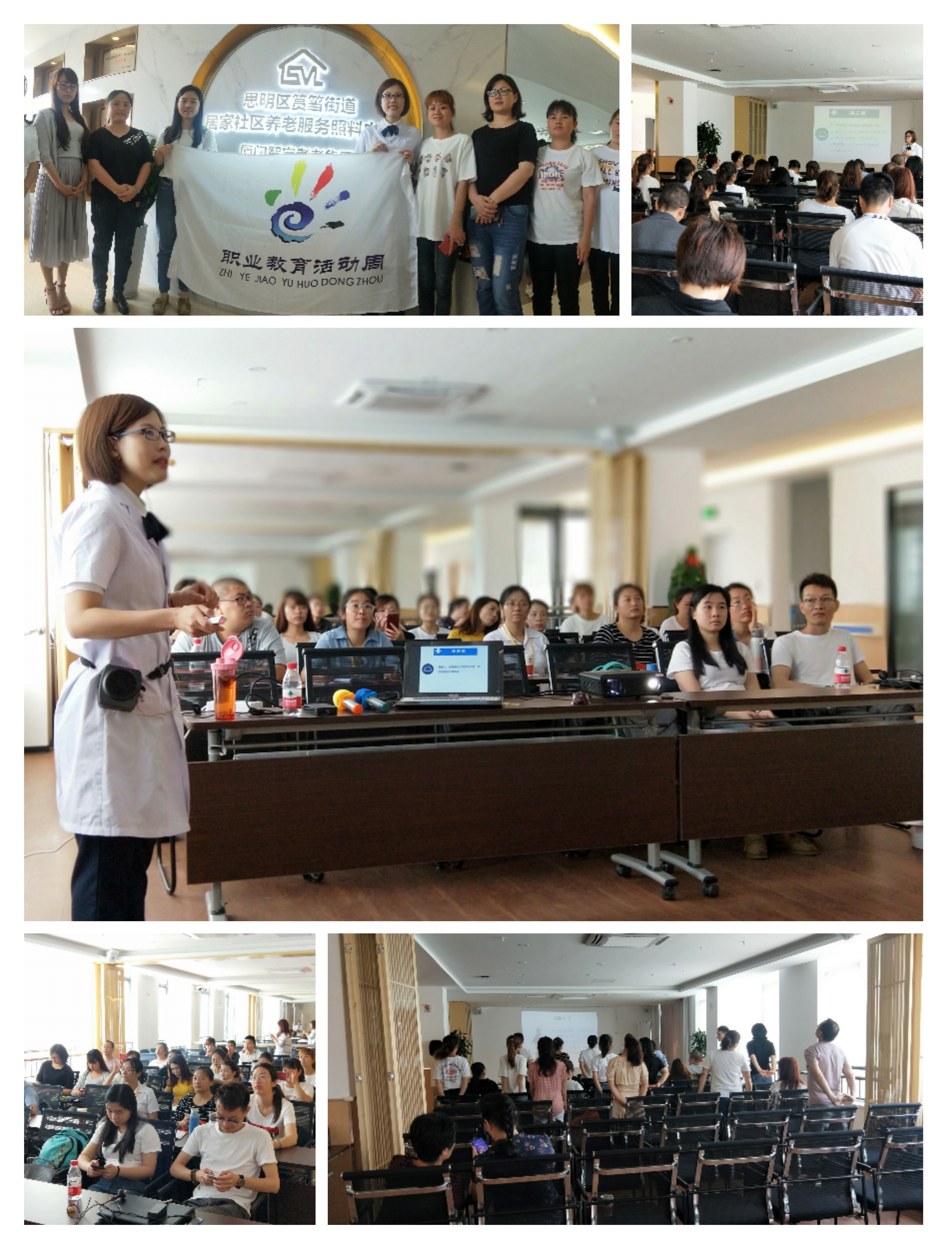 為了積極響應2019年全國職業(yè)教育活動周的號召,傳遞敬老愛親的傳統(tǒng)美德,進一步提高社區(qū)助老員的居家養(yǎng)老綜合素質(zhì)和專業(yè)水平。5月13日至14日,來自臨床醫(yī)學系“肢體功能障礙康復功法創(chuàng)編”科技創(chuàng)新團隊的徐麗鶯、鄭松老師,前往廈門智宇孝老集團筼筜照料中心,對來自6個區(qū)的助老員進行為期2天的培訓。首批共有24名助老員參加系統(tǒng)的、有針對性的康復功法培訓。