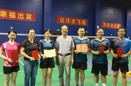 羽毛球公益賽設(shè)雙打項目。我校教工羽毛球隊獲男子雙打和混合雙打第二名、女子雙打第三名。