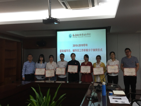 10月22日,學(xué)工處在行政樓4樓會(huì)議室舉辦2018-2019學(xué)年星級(jí)輔導(dǎo)員、輔導(dǎo)員工作積極分子頒獎(jiǎng)儀式。陳貞健副校長(zhǎng)、學(xué)工處、以及專兼職輔導(dǎo)員近60人參加了頒獎(jiǎng)儀式。陳貞健副校長(zhǎng)為獲得學(xué)年星級(jí)輔導(dǎo)員榮譽(yù)稱號(hào)的優(yōu)秀專職輔導(dǎo)員和獲得輔導(dǎo)員工作積極分子稱號(hào)的優(yōu)秀兼職輔導(dǎo)員頒獎(jiǎng)。