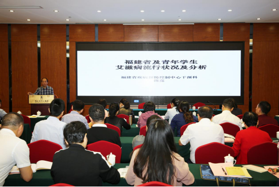 10月28日上午,由福建省教育廳主辦,我校承辦的“2019年全省學(xué)校艾滋病防控工作培訓(xùn)班”在福州順利開(kāi)班。省教育廳體衛(wèi)藝語(yǔ)處調(diào)研員彭杰,省衛(wèi)健委疾控處副處長(zhǎng)、調(diào)研員翁鋮,我校副校長(zhǎng)黃銘珊等領(lǐng)導(dǎo)和專家, 以及來(lái)自各設(shè)區(qū)市、平潭綜合實(shí)驗(yàn)區(qū)教育局分管學(xué)校衛(wèi)生工作負(fù)責(zé)同志,全省高校,省屬中等職業(yè)學(xué)校、中小學(xué)公共衛(wèi)生管理部門負(fù)責(zé)人共116人參加了此次培訓(xùn)。