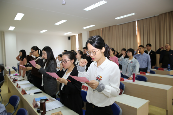 隨后,校領(lǐng)導(dǎo)共同觀看了新同事們精心錄制的自我介紹視頻,為新進(jìn)教職工代表頒發(fā)學(xué)校章程和?;?,并見(jiàn)證了新教師們莊嚴(yán)的入職宣誓。